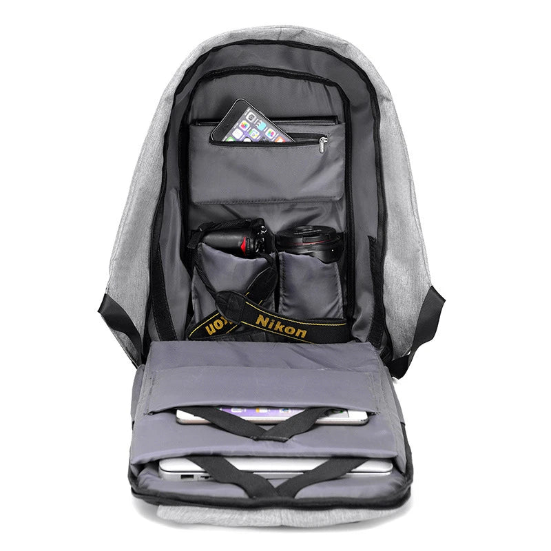 Presenting the 'SnapPack', your comprehensive solution for carrying camera gear and keeping your devices charged on the go. This innovative backpack is designed with dedicated, padded compartments to protect your camera, lenses, and other photographic equipment. The adjustable dividers allow you to customize the bag layout to fit your specific gear setup. But the SnapPack isn’t just about storage – it's also about power. Integrated into the backpack is a robust phone charger, capable of quickly recharging your devices during your adventures. Crafted from durable, weather-resistant materials, the SnapPack stands up to the elements and the demands of your travels. Whether you're hiking in the mountains or exploring the city streets, the SnapPack is your indispensable companion, keeping your gear safe and your devices powered.